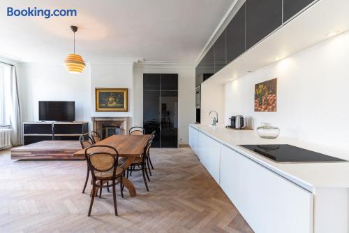 The Grand Apartment is a spacious and elegant residence in the heart of the Sablon, designed for guests seeking comfort and refinement. It features a bright living area, a fully equipped kitchen, and a large bedroom with premium bedding. With high-quality finishes, natural light, and a calm atmosphere, it offers the perfect balance between city living and relaxation.